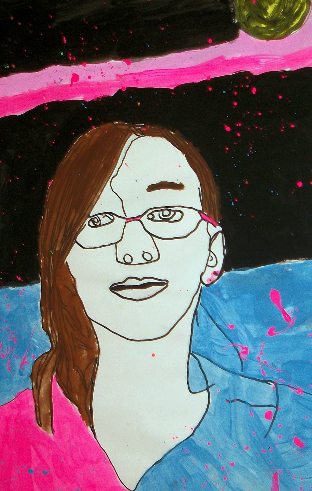 Next art class they will be using a photocopy of their picture or (their yearbook picture) to create a portrait on paper. I show them how to take their photocopy and shade the back of it with pencil. Then they lay their copy on to another sheet of paper and trace over the contour lines. The pencil shading from the back will show up on the front. I encourage them to trace over their lines again with pencil or sharpie so they are more visible. But once that step is complete, they are allowed to choose a medium and a style to finish them. I plan on showing them how to use the chalk pastels, because they are my preferred medium but students pick a variety of tools to work with. They end up all so creative and interesting!